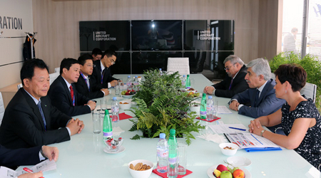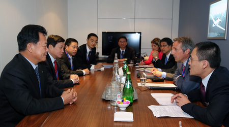 中國經濟網訊 2012年7月10日,在第四十八屆范堡羅航展期間,中國商飛公司總經理賀東風會見了國際航空界友人,就深化溝通合作、促進雙方共同發展等問題進行了深入交流。公司獨立董事李豐華出席相關會見活動。
