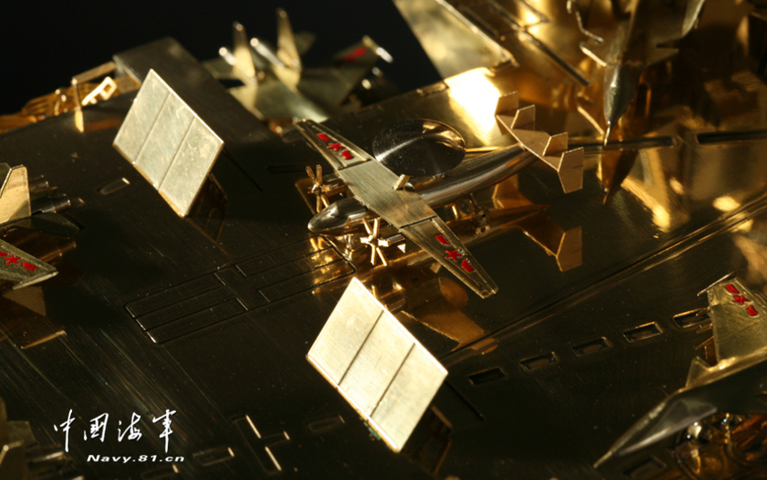 中國海軍網上一組我國航母的模型照片上出現了艦載預警機的照片,這款模型與此前網上流傳出的四垂尾艦載預警機非常相似。
