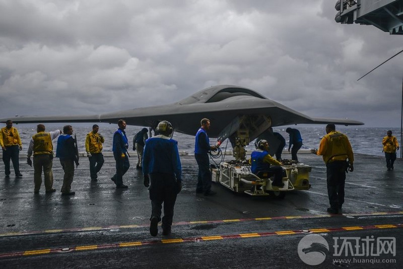 【環球網綜合報道】據美國海軍網報道,12月7日,在大西洋上航行的美國海軍杜魯門號航母(CVN-75)上,來自美國美國海軍無人戰斗機項目的工程師們對該航母搭載的X-47B無人艦載戰斗機進行了一系列測試。測試的項目包括將X-47B無人機從機庫轉移到甲板、無人機在航母甲板上的停放實驗等,整個測試過程從白天持續到黑夜。
