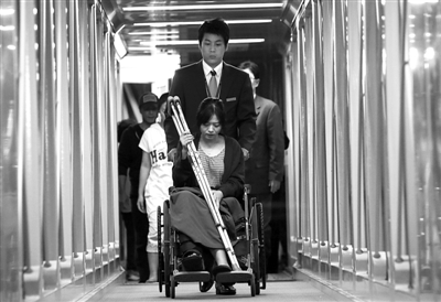 11日,韓亞航空出事客機一名受傷的乘務員出院后,抵達韓國仁川機場。