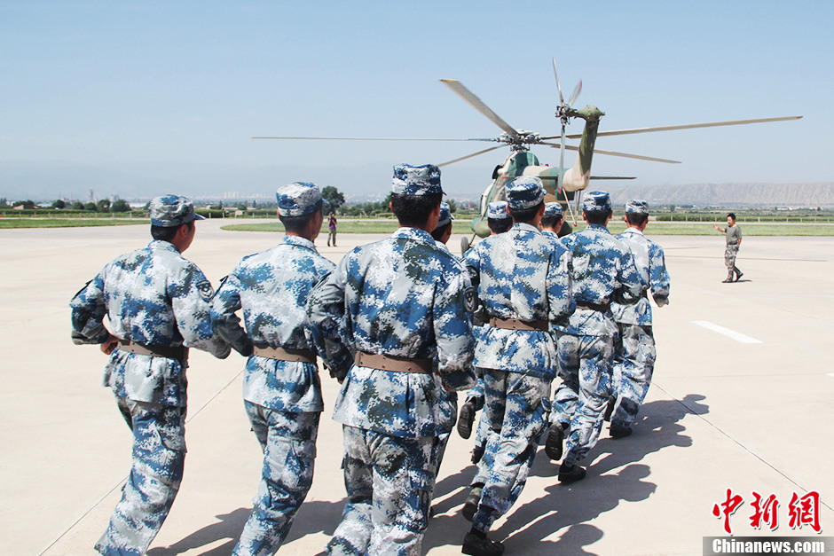 7月24日,空軍某航運團接到飛赴災區救援的命令后,直升機緊急升空,在克服復雜氣象條件和地形下飛行2個多小時,成功趕在下雨前將4名重傷病員轉運出岷縣災區,據悉,這四名重傷員為不同部位粉碎性骨折,病情最嚴重的是一位胸腔骨折的80歲高齡老人,最小的僅12歲,均被安全轉移到蘭州市條件更好的醫院。中新社發 顏劍光 攝