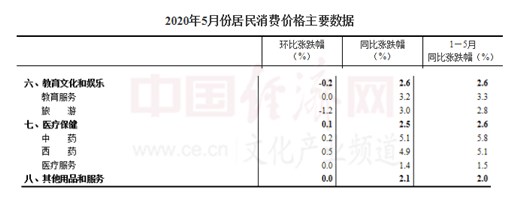 5月份教育文化和娛樂類居民消費價格同比上漲2.2%