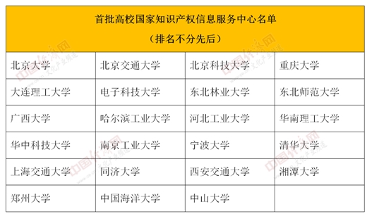 據(jù)中國經(jīng)濟(jì)網(wǎng)文化產(chǎn)業(yè)頻道記者了解,2019年3月7日,經(jīng)國家知識(shí)產(chǎn)權(quán)局辦公室聯(lián)合國家教育部辦公廳公布,北京大學(xué)等23家高校已入選“首批高校國家知識(shí)產(chǎn)權(quán)信息服務(wù)中心”名單。隨著第二批37家高校的入選,“高校國家知識(shí)產(chǎn)權(quán)信息服務(wù)中心”總體數(shù)量增至60家。