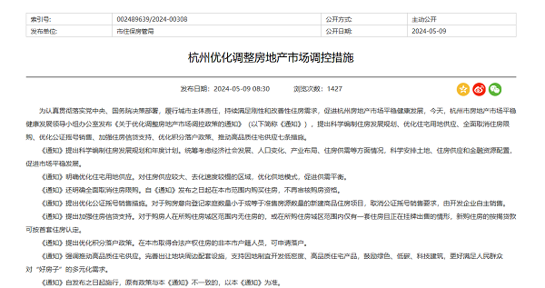 中國經濟網北京5月9日訊(記者 李方) 5月9日,杭州市房地產市場平穩健康發展領導小組辦公室發布《關于優化調整房地產市場調控政策的通知》,明確杭州全面取消住房限購,全市范圍內購買住房,不再審核購房資格;同時降低落戶門檻,購房即可落戶,只要在杭州取得合法產權住房即可申請落戶,不再受學歷等限制。