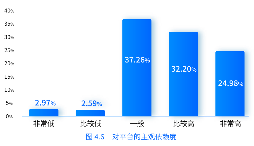 “我們?cè)谡{(diào)研中發(fā)現(xiàn),貨車司機(jī)對(duì)使用數(shù)字貨運(yùn)平臺(tái)的主觀依賴度還是很高的。”中國(guó)人民大學(xué)中國(guó)就業(yè)與民生研究院執(zhí)行副院長(zhǎng)周廣肅說(shuō)。報(bào)告中指出,主觀認(rèn)為自己對(duì)平臺(tái)的依賴程度較高和非常高的司機(jī)占全體調(diào)查司機(jī)的57.18 %,超過(guò)了總數(shù)的一半。
