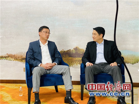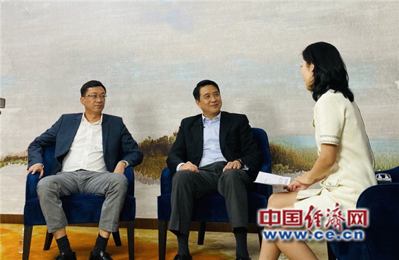 圖為國藥器械總經理李楊(左)和GE醫療中國總裁兼CEO張軼昊接受經濟日報-中國經濟網記者采訪