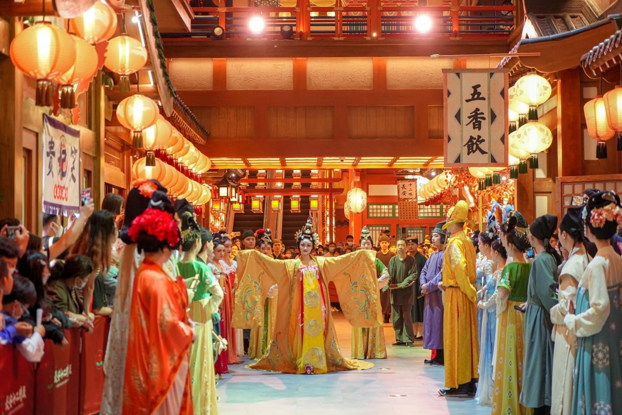 在西安,長安十二時辰主題街區已成為現象級文化IP。這個以唐文化為底色的唐風沉浸式主題樂園,不僅還原了唐長安城坊市繁華場景,更通過“影視IP+文化創意+全感官沉浸式體驗”模式,開業以來接待游客量突破700萬人次,新消費場景也以輻射效應帶動周邊餐飲、住宿、漢服產業增收。“我們不是簡單復制唐文化,而是用年輕人喜歡的方式重構文化消費場景。”陜西文旅控股有限公司董事長、長安十二時辰主題街區負責人鄒林豐介紹,街區將獨特的唐文化餐飲、漢服走秀、游戲沉浸式體驗與文化消費生態相融合,在激發游客文化歸屬感的同時,持續帶動街區二銷創收,2024年全年街區總收入達2.3億元。