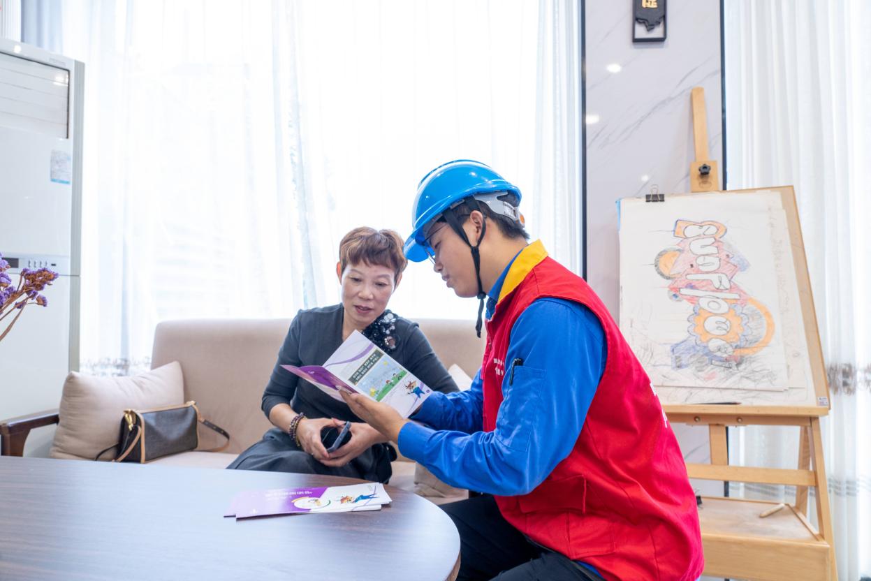 “插排不要同時接這么多大功率電器,容易引發短路。”在排查整治的同時,服務隊隊員充分發揮專業優勢,向民宿從業人員發放安全用電手冊,現場講解安全用電知識,耐心解答日常用電中遇到的各類問題。針對檢查中發現的問題,能夠當場解決的立即處理;需要后續跟進的,則建立臺賬,明確整改時限和責任人,確保問題整改到位,從源頭上消除安全隱患,為游客營造安全、舒適的住宿環境。