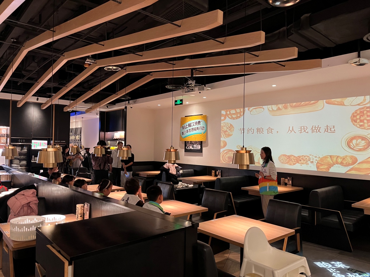活動將科普與實(shí)踐相結(jié)合,青少年志愿者們學(xué)以致用,在實(shí)踐環(huán)節(jié)化身“制止餐飲浪費(fèi)”宣傳員,向餐廳中的消費(fèi)者宣傳節(jié)糧反浪費(fèi)知識。