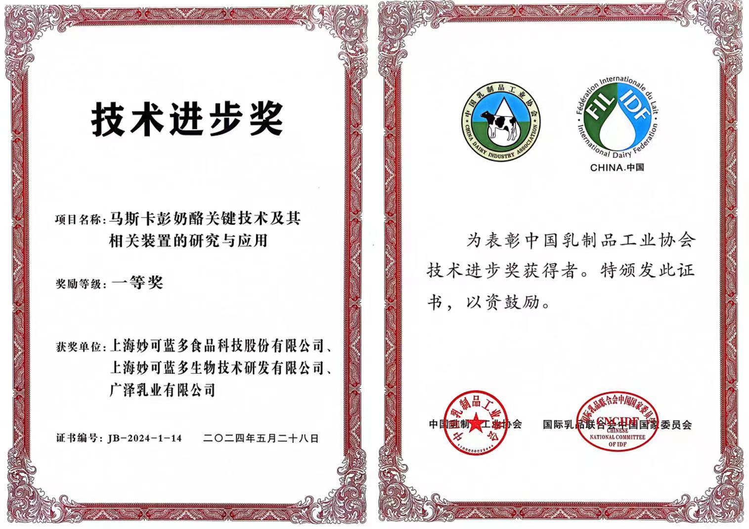 在TO B方面,妙可藍多“馬斯卡彭奶酪關鍵技術及其相關裝置的研究與應用”獲得中國乳制品工業協會和國際乳品聯合會中國國家委員會聯合頒發的技術進步一等獎。這既驗證了其在原制奶酪領域研發與生產的成熟能力,同時也將加速推動妙可藍多在B端產品創新。