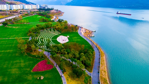 云陽縣濱江公園開闊整潔的月光草坪緊鄰長江,綠草如茵,綠樹成蔭,自行車道、跑步道、漫步道、驛站等休閑設施一應俱全,是這座移民新城的重要休閑娛樂場所。漫步月光草坪,42歲的庫區(qū)移民鐘燕興奮地指點著說,白天市民跑步鍛煉、釣魚游泳,晚上休閑散步、跳廣場舞,日子安逸得很!