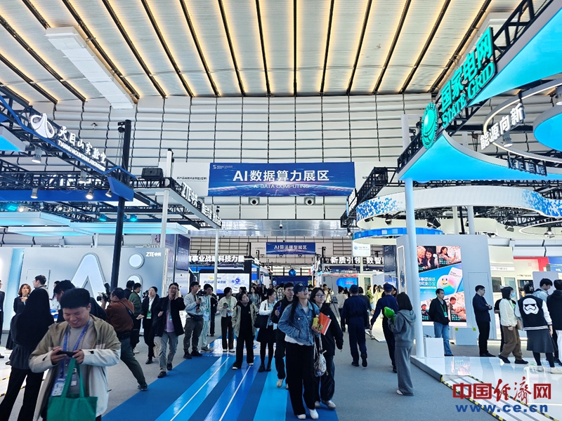 AI數(shù)據(jù)算力展區(qū)游客絡繹不絕。中國經濟網記者李方攝