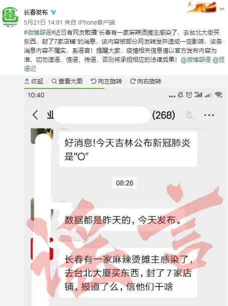 謠言粉碎機三:長春一麻辣燙攤主感染新冠病毒,7家店鋪被封?謠言!
