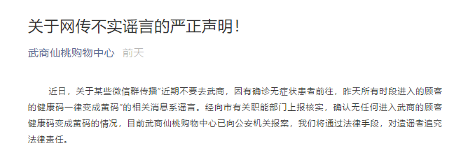謠言粉碎機二:因無癥狀感染者前往,湖北仙桃武商購物中心顧客健康碼變黃?謠言!