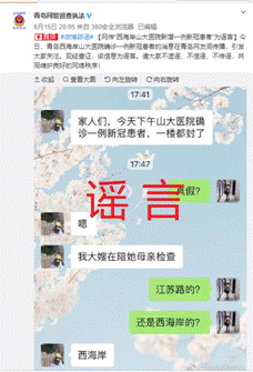 此外,記者從 @青島網警巡查執(zhí)法 獲悉,網傳“西海岸山大醫(yī)院新增一例新冠患者”也系謠言。