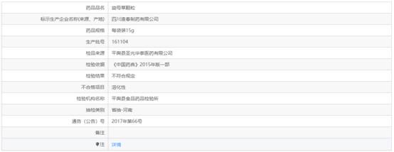事實上,這并非四川逢春制藥有限公司首次出現藥品質量缺陷。中國經濟網記者查詢發現,此前該公司生產的益母草顆粒就曾被通報不合格。