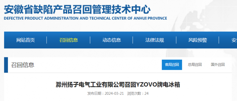 2024-03-22 09:33 來源:安徽省缺陷產品召回管理技術中心網站