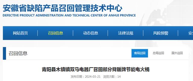 2024-03-22 09:34 來源:安徽省缺陷產品召回管理技術中心網站
