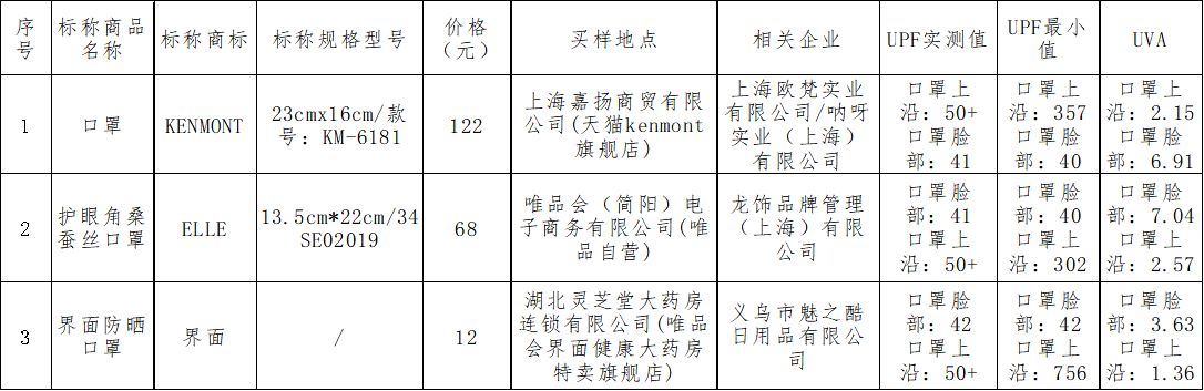 夏日炎炎,做好防曬至關重要,佩戴防曬又舒適的防曬口罩(面罩)成為很多消費者的首選。目前市場上涌現出眾多品牌和款式的防曬口罩及面罩,其功能、價格等方面存在較大差異,7月9日,上海市消費者權益保護委員會發布防曬口罩(面罩)比較試驗結果:KENMONT、HTBT等4款樣品防曬性能不符合標準要求;KENMONT、ELLE等3款樣品實測UPF值與明示或宣稱不符。