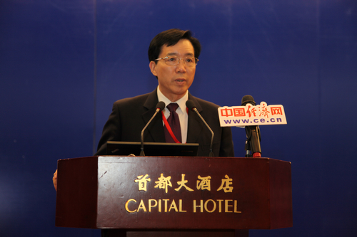 由中國道路交通安全協會、中國汽車技術研究中心和中國經濟網共同主辦的“2013中國道路交通安全論壇”于8月29日在北京首都大酒店舉行。圖為開幕式主持人中國道路交通安全協會常務副理事長樊漢國。中國經濟網 裴小閣 攝影