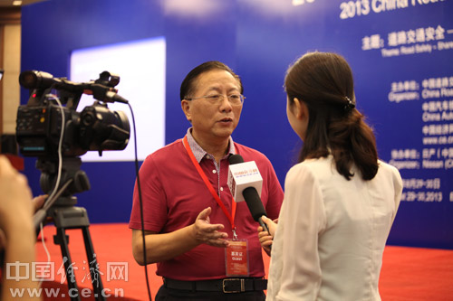 由中國道路交通安全協(xié)會、中國汽車技術(shù)研究中心和中國經(jīng)濟(jì)網(wǎng)共同主辦的“2013中國道路交通安全論壇”于8月29日在北京首都大酒店舉行。圖為2013中國道路交通安全論壇與會嘉賓接受中國經(jīng)濟(jì)網(wǎng)記者郭樅樅采訪。中國經(jīng)濟(jì)網(wǎng) 裴小閣 攝影