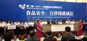 主題為“食品安全:自律鑄就誠信”的第二屆(2010)中國食品安全高層論壇今天在北京舉行。中糧聯(lián)合華潤、娃哈哈等100多家知名食品企業(yè)在論壇上共同發(fā)表誠信宣言,向社會(huì)鄭重承諾:鉻記榮辱義利,維護(hù)人民福祉。