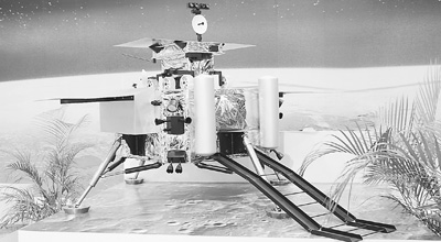 上部小車為月面巡視器模型,下為月面軟著陸探測(cè)器模型。我國(guó)探月工程二期將研制和發(fā)射月面軟著陸探測(cè)器和巡視器,開(kāi)展月面探測(cè)活動(dòng),實(shí)現(xiàn)落月目標(biāo),也就是嫦娥三號(hào)任務(wù)。